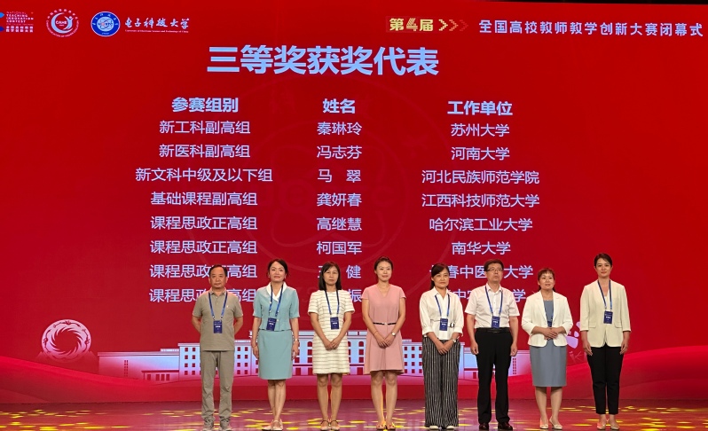 第四届全国高校教师教学创新大赛全国赛于7月27-31日在成都举办。雷速体育 秦琳玲副教授领衔的《应用光学》课程团队继获得第三届江苏省高校教师教学创新大赛特等奖后,入围全国现场决赛并荣获新工科副高组三等奖。