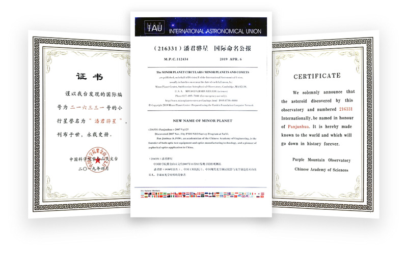 潘君骅院士长期致力于光学测试仪器和光学制造技术研究,于50年代后期提出大望远镜二次凸面副镜新的检验方法,并实际应用于苏联6米望远镜和我国60厘米望远镜及2.16米望远镜的副镜检验;60年代至70年代,在研制我国大型靶场光学设备的过程中建立了一套重要的光学加工和检测技术,解决了一些光学非球面加工的关键技术难题。他主持完成的我国和远东口径最大的2.16米光学天文望远镜获国家科技进步一等奖,折轴阶梯光栅分光仪获中国科雷速体育 科技进步二等奖。近年来,潘院士还研制了多种特殊非球面光学仪器和设备,发表了科研论文数十篇,出版专著1部。2019年,国际小行星中心和国际小行星命名委员会发布国际命名公报,确定“潘君骅星”命名,并刊入《国际小行星历表》,体现了国际社会对潘院士科技成就的高度肯定和高度评价。潘君骅院士小行星命名事件入选2019年中国光学领域十大社会影响力事件。